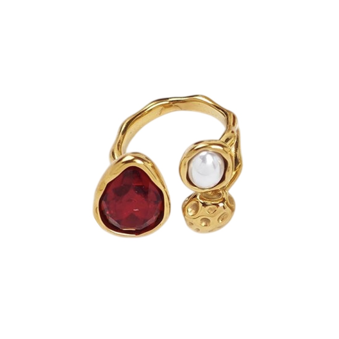Δαχτυλίδι από επιχρυσωμένο ατσάλι, διακοσμημένο με πέρλα και χρωματιστό ζιργκόν.