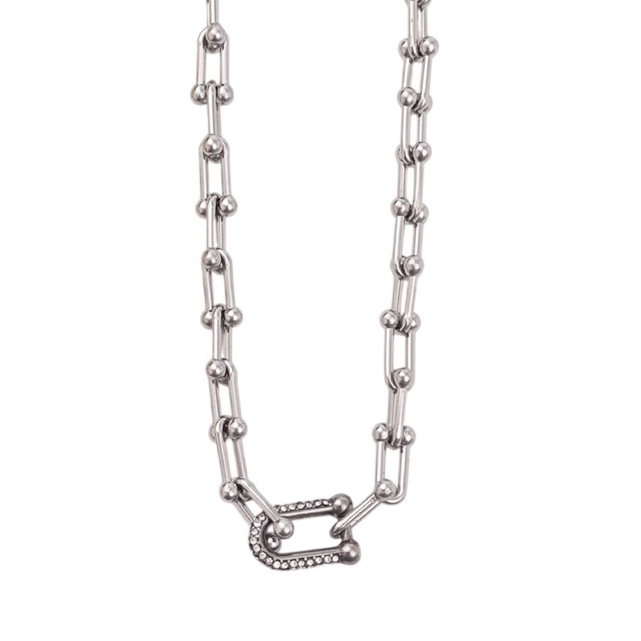 Κομψό κολιέ από ατσάλι, διακοσμημένο με λαμπερά ζιργκόν που χαρίζουν μοναδική λάμψη σε κάθε κίνηση. Ιδανικό για να φορεθεί μόνο του ή σε συνδυασμό με άλλα κολιέ, προσθέτει μια διακριτική πολυτέλεια σε κάθε εμφάνιση. Δεν μαυρίζει και παραμένει εντυπωσιακό με την πάροδο του χρόνου.
