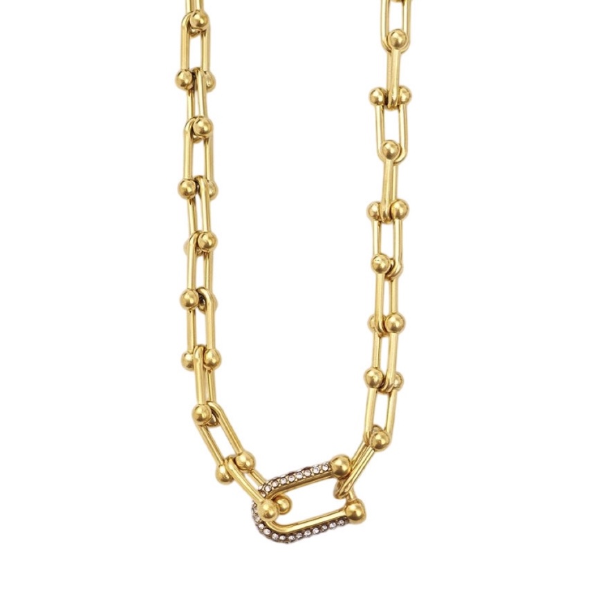 Κομψό κολιέ από ατσάλι, διακοσμημένο με λαμπερά ζιργκόν που χαρίζουν μοναδική λάμψη σε κάθε κίνηση. Ιδανικό για να φορεθεί μόνο του ή σε συνδυασμό με άλλα κολιέ, προσθέτει μια διακριτική πολυτέλεια σε κάθε εμφάνιση. Δεν μαυρίζει και παραμένει εντυπωσιακό με την πάροδο του χρόνου.