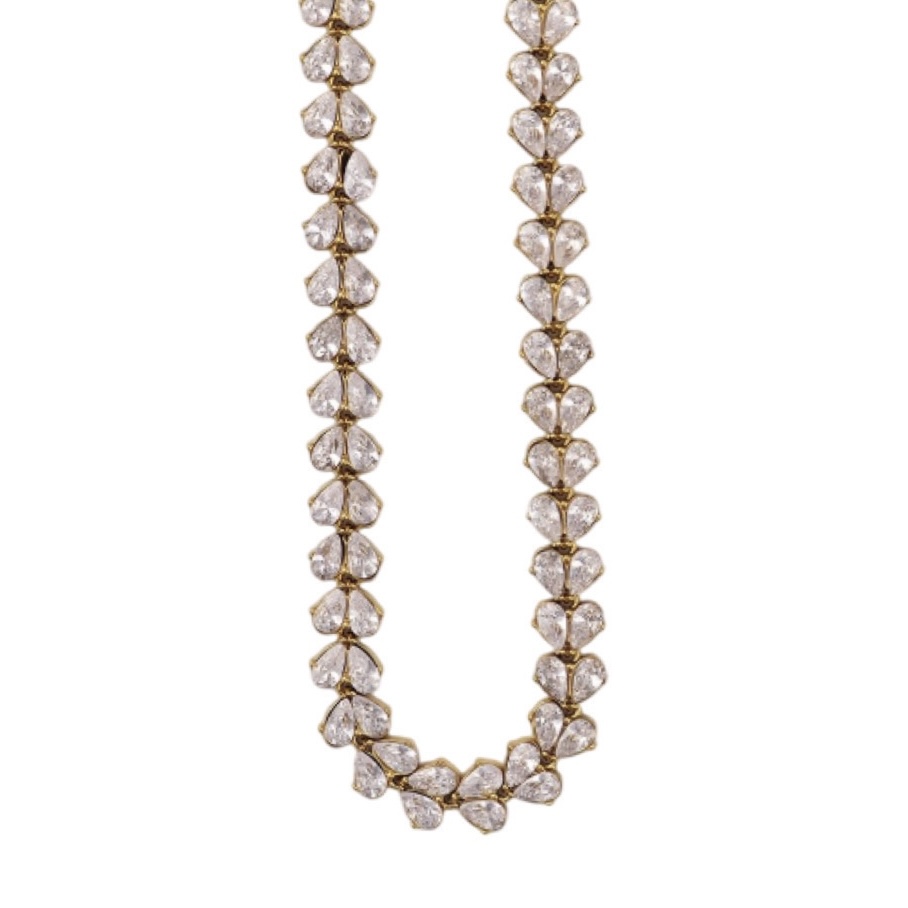 Κολιέ από ανοξείδωτο ατσάλι σε σχέδιο ριβιέρα, διακοσμημένο σε όλο του το μήκος με πέτρες ζιρκόν που δίνουν έντονη λάμψη. Φοριέται σαν κοντό κολιέ, ενώ διαθέτει extension για να προσαρμόζεται στο μήκος που θέλεις.