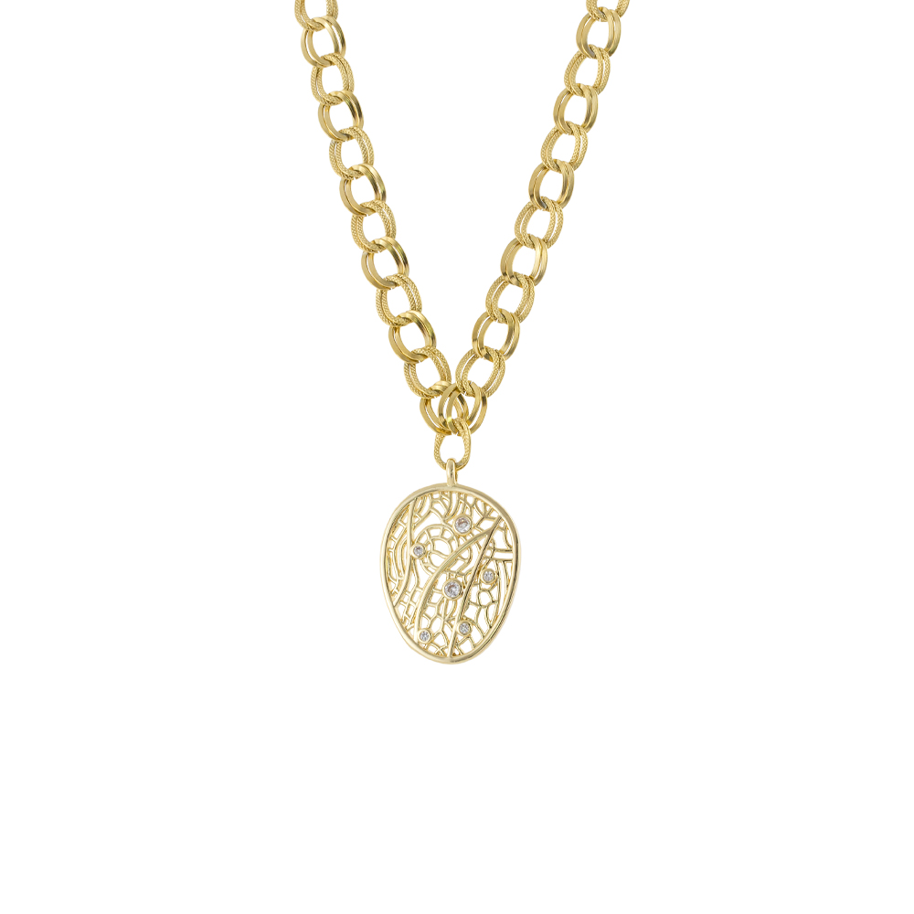 Κολιέ Lace μεταλλικό επίχρυσο με καδένα και διάτρητο στοιχείο με ζιργκόν