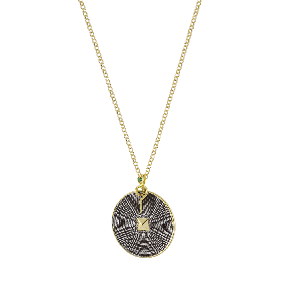 Κολιέ Natrix μεταλλικό επίχρυσο μακρύ με φίδι και πράσινο ζιργκόν