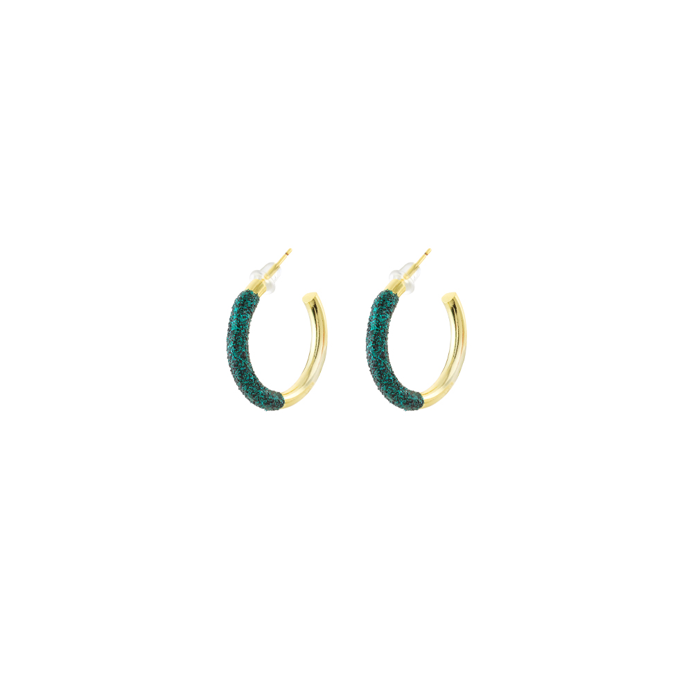 Σκουλαρίκια Candy Festive μεταλλικά επίχρυσα κρίκοι με πράσινο glitter