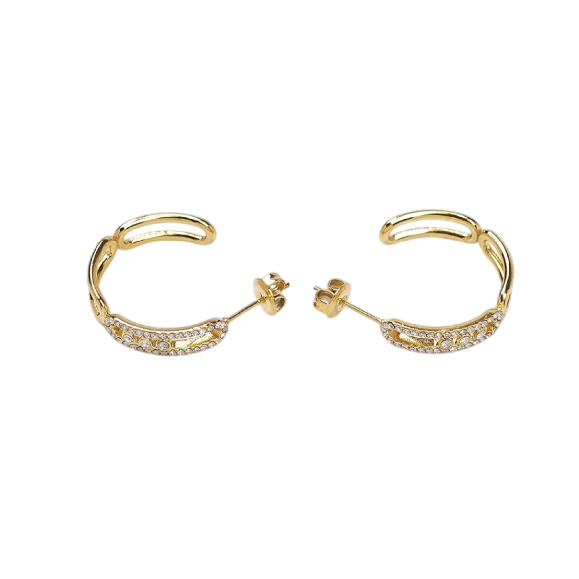 Εντυπωσιακά σκουλαρίκια από ανθεκτικό, υποαλλεργικό επιχρυσωμένο ατσάλι με τρεις λαμπερές πέτρες ζιργκόν που συμβολίζουν το παρελθόν, το παρόν και το μέλλον. Ο μινιμαλιστικός σχεδιασμός τους αναδεικνύει τη διαχρονική λάμψη των πετρών, ενώ το υλικό τους δεν μαυρίζει και δεν αλλοιώνεται, προσφέροντας κομψότητα που διαρκεί. Ένα ιδιαίτερο κόσμημα που συνδυάζει συμβολισμό και στυλ, ιδανικό για κάθε περίσταση.