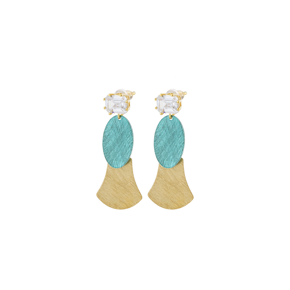 Σκουλαρίκια Helianthus ασημένια επίχρυσα / πράσινα με στοιχεία και λευκό ζιργκόν