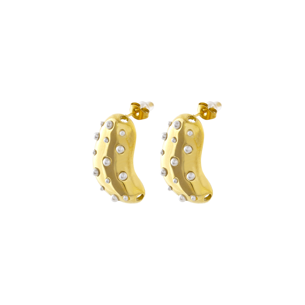 Σκουλαρίκια Karma ατσάλινα επίχρυσα με λευκές πέρλες