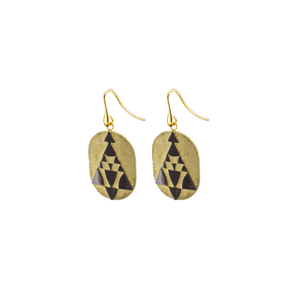 Σκουλαρίκια Natrix μεταλλικά επίχρυσα με μαύρο σχέδιο 3.5 cm