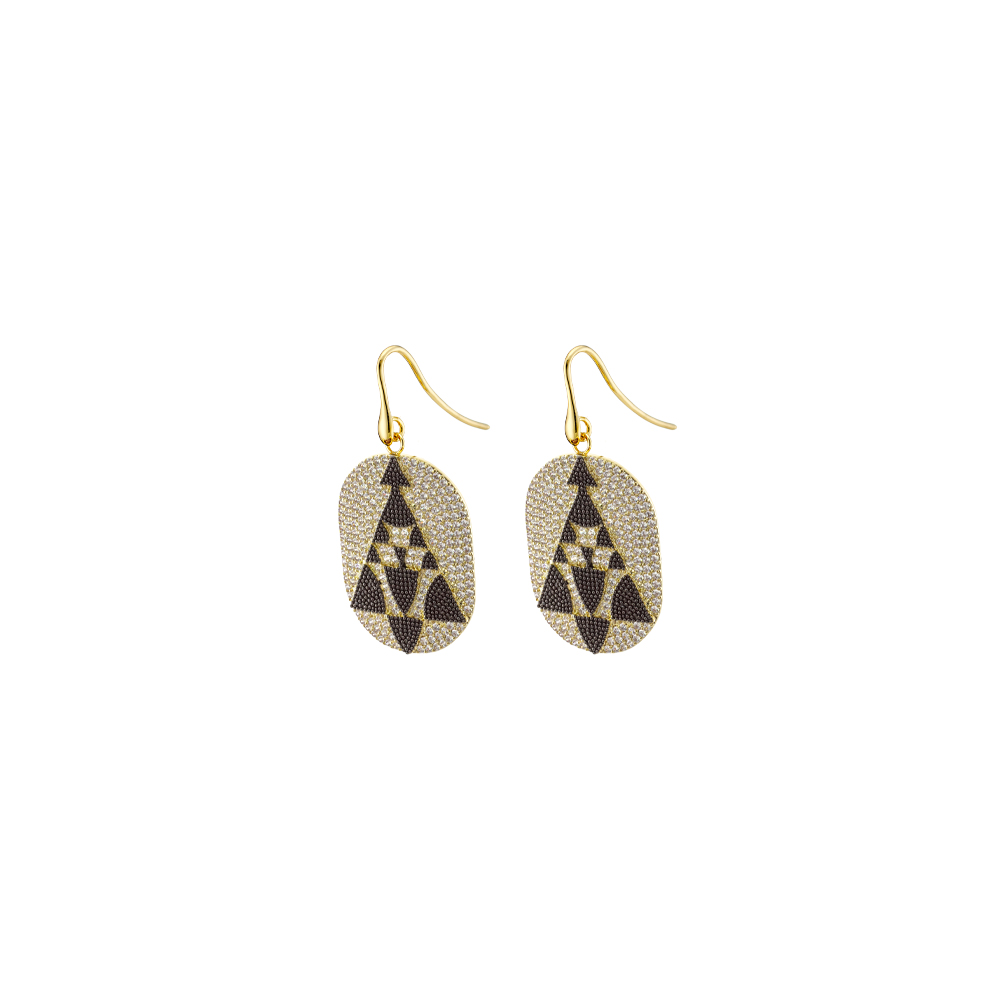 Σκουλαρίκια Natrix μεταλλικά επίχρυσα με μαύρο σχέδιο και λευκά ζιργκόν 2.5 cm