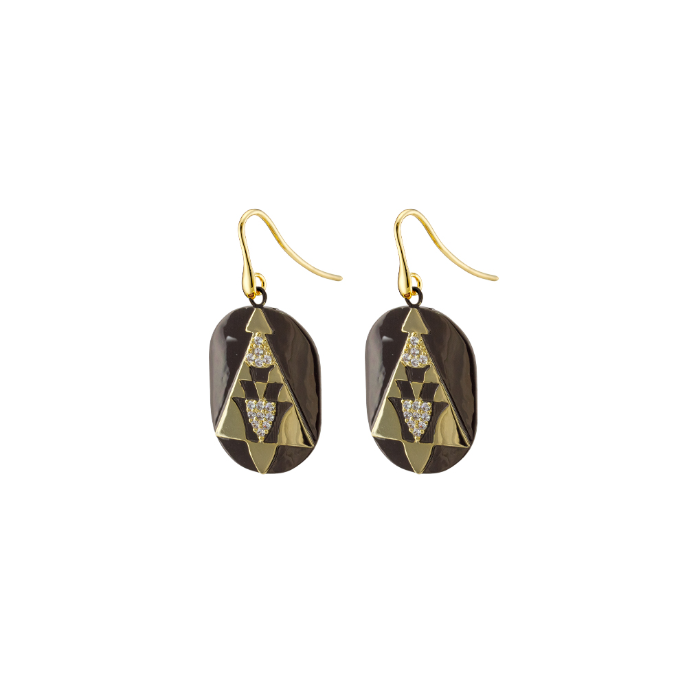 Σκουλαρίκια Natrix μεταλλικά μαύρα με επίχρυσο σχέδιο και λευκά ζιργκόν 3.5 cm