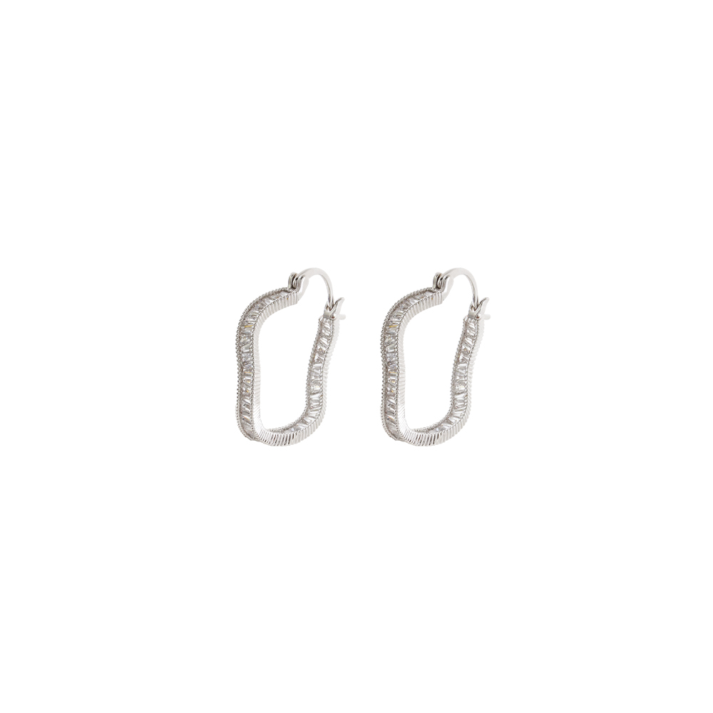 Σκουλαρίκια Party μεταλλικά ασημί κρίκοι wavy 2.3 cm με λευκά ζιργκόν