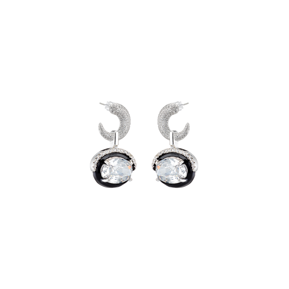 Σκουλαρίκια Party μεταλλικά ασημί με μαύρο σμάλτο και λευκά κρύσταλλα