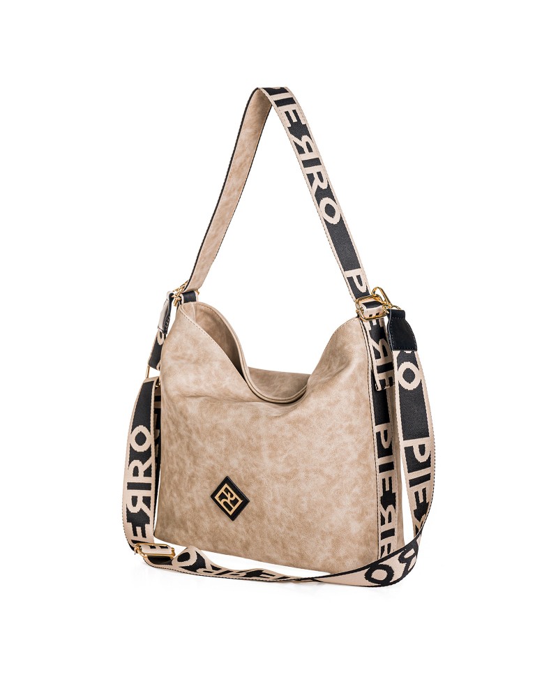 Μοντέρνα τσάντα ώμου από τη σειρά Strap της Pierro Accessories, με φαρδύ ιμάντα με το logo PIERRO. Διαθέτει εσωτερικό χώρισμα με φερμουάρ και εξωτερική πίσω τσέπη με φερμουάρ, για πρακτική οργάνωση. Από υψηλής ποιότητας οικολογικό δέρμα, ιδανική για καθημερινές εμφανίσεις με στυλ.