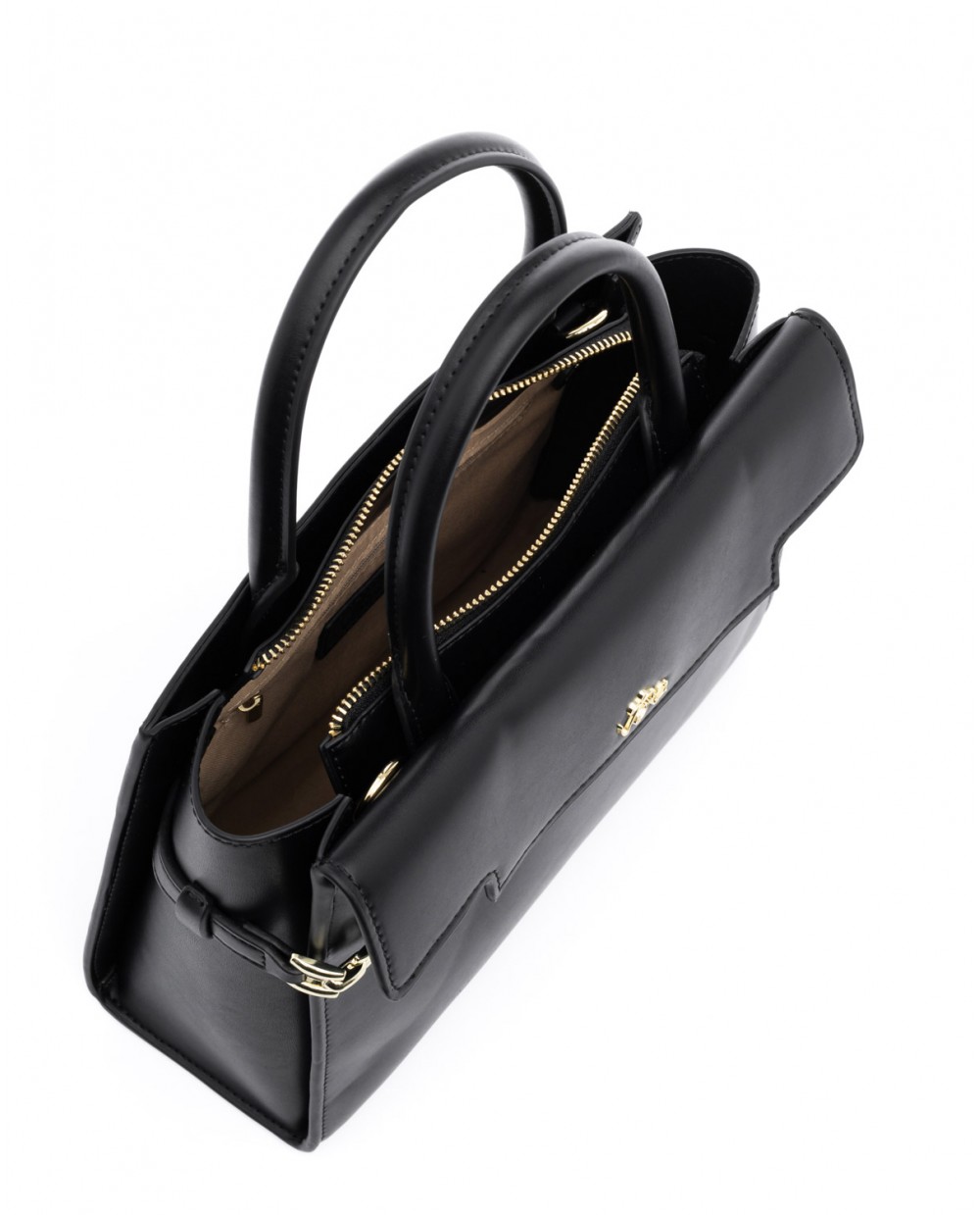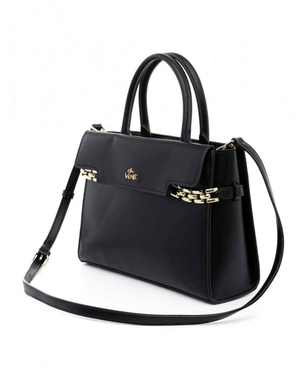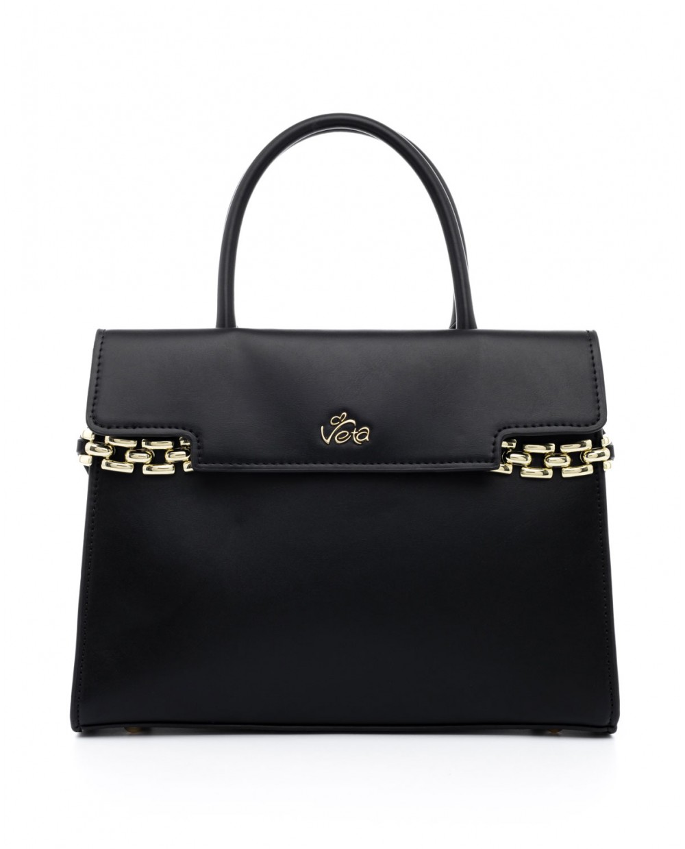 Τσάντα χειρός μαύρη με διακοσμητικά χρυσά μπρασελέ.