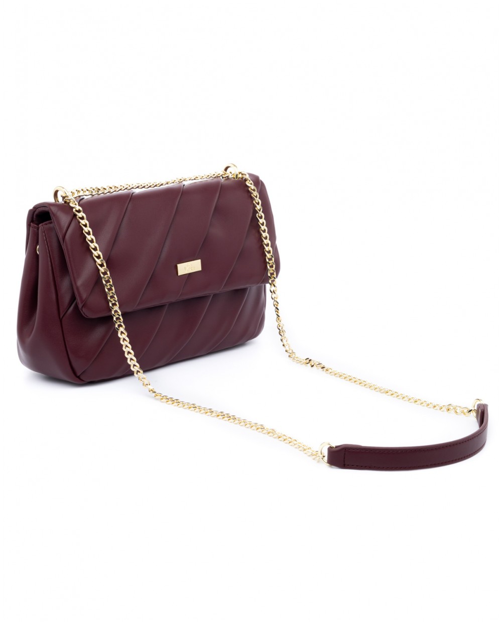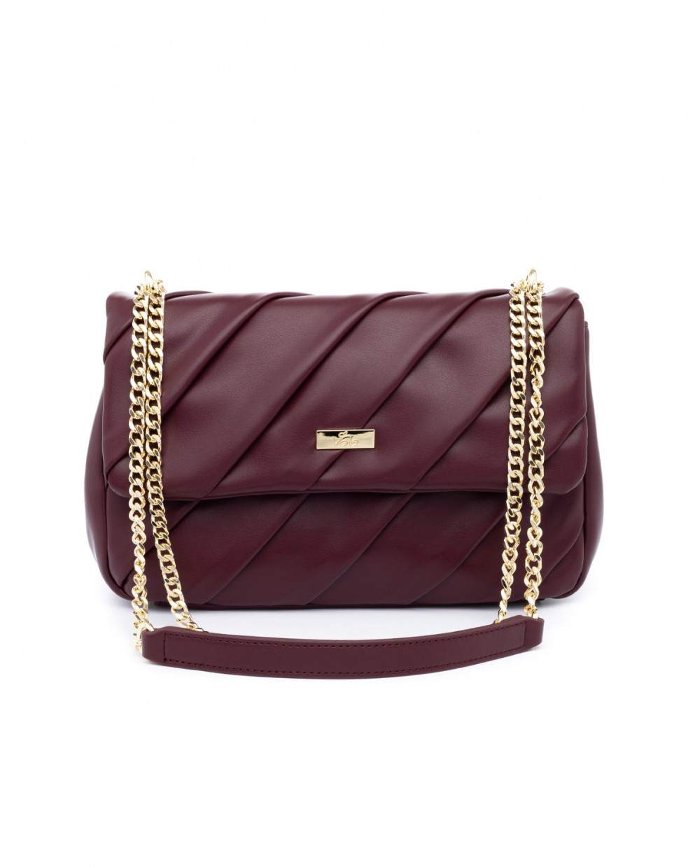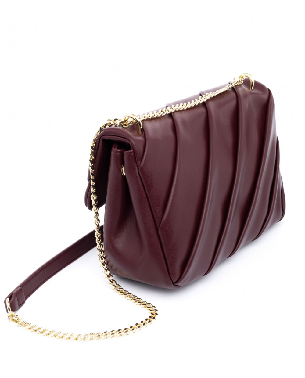 Τσάντα ώμου μπορντό με πιέτες και χρυσή αλυσίδα.