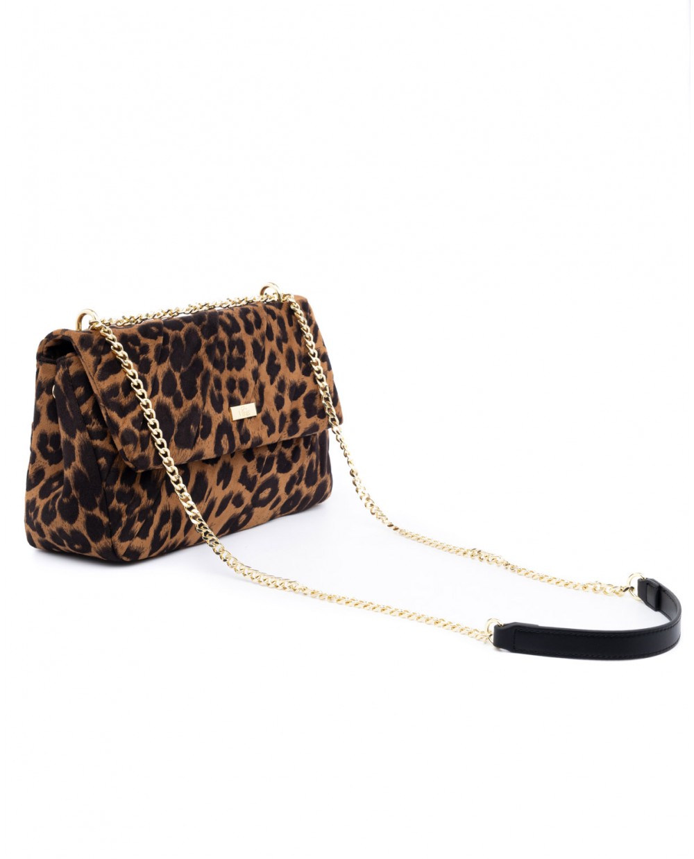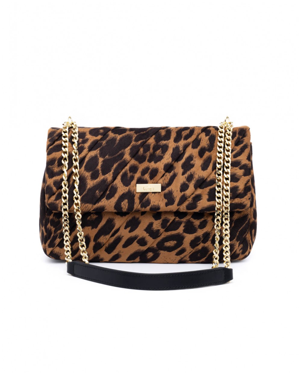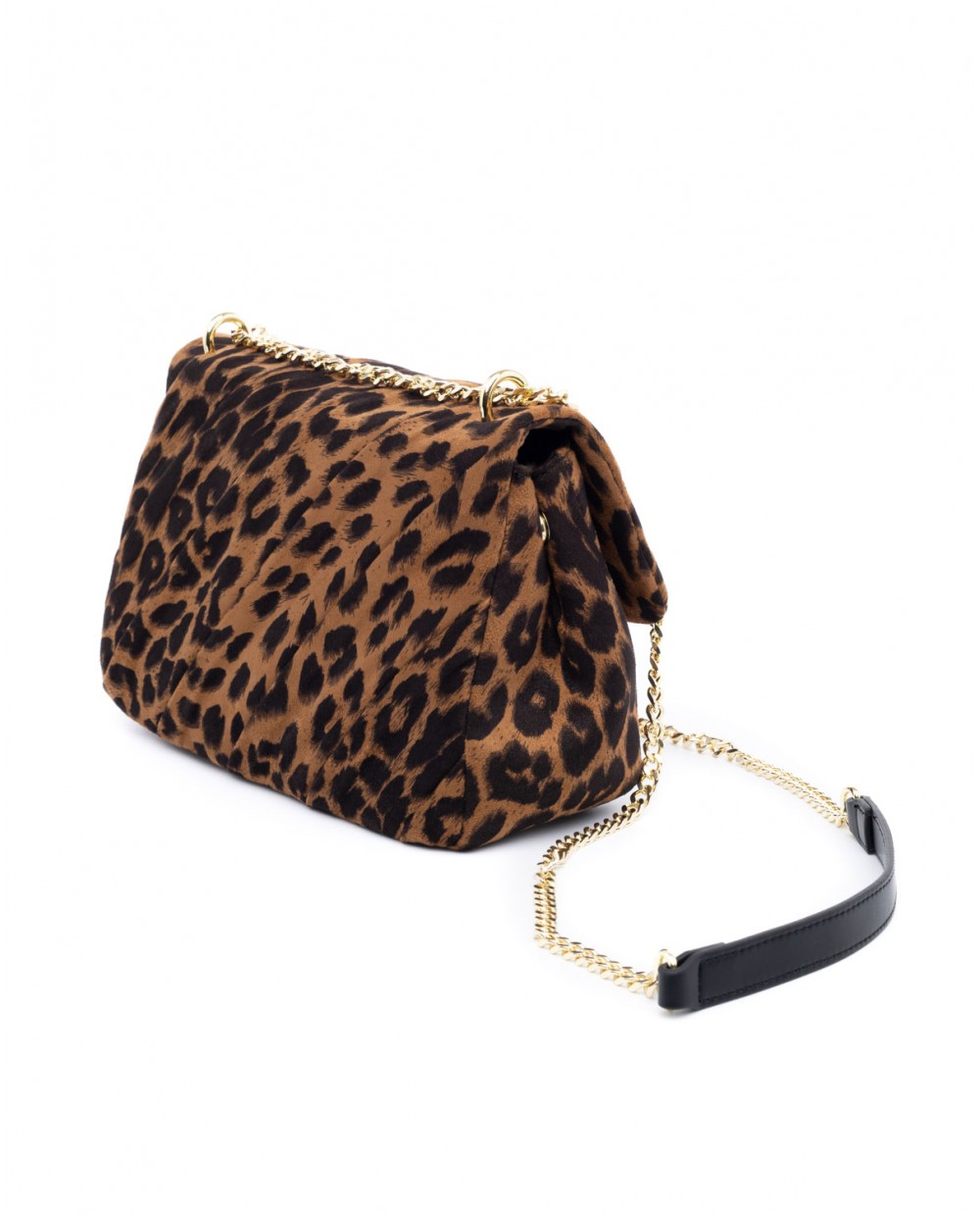 Τσάντα ώμου σουέντ λεοπάρ με πιέτες και χρυσή αλυσίδα.
