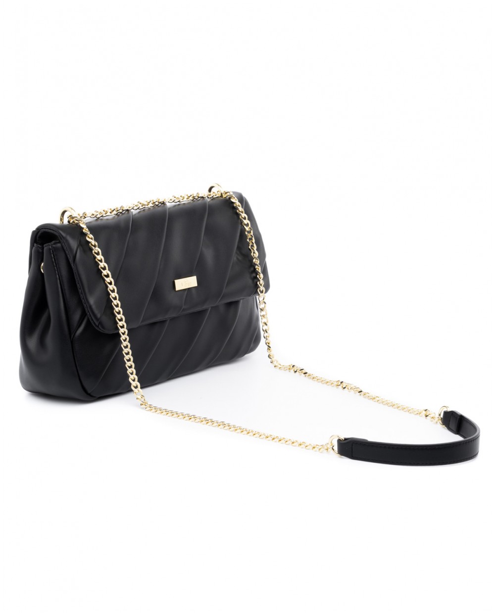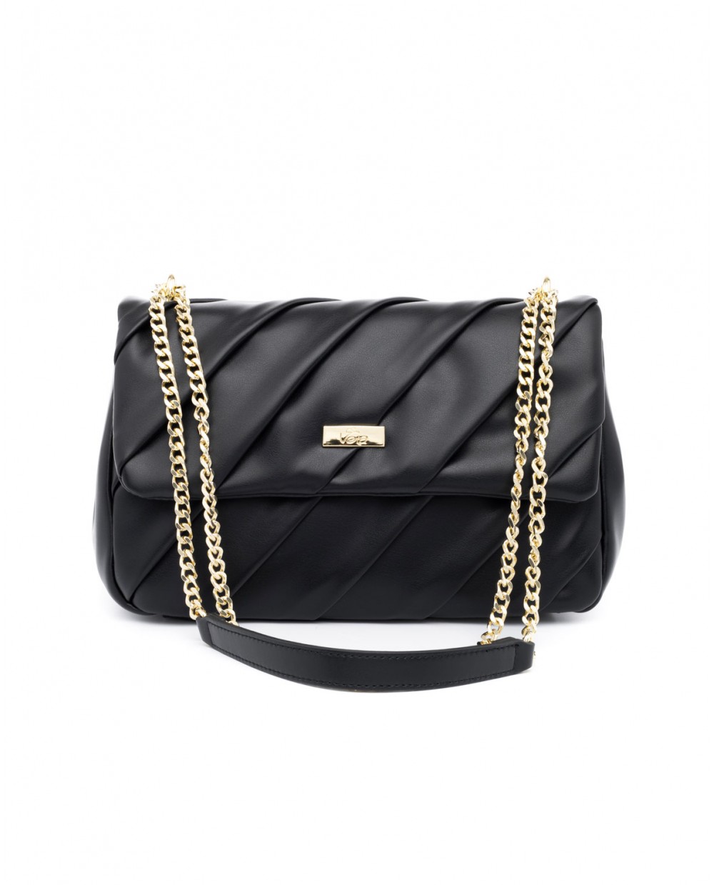 - Τσάντα ώμου μαύρη με πιέτες και χρυσή αλυσίδα.