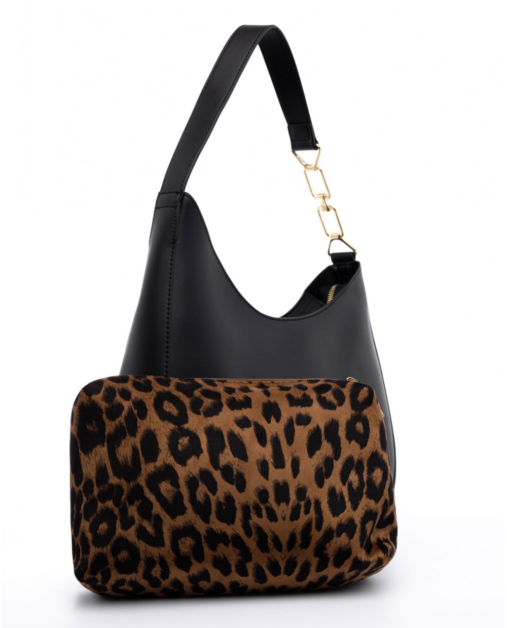 Τσάντα ώμου μαύρη με εξτρά λεοπάρ τσαντάκι εσωτερικά.