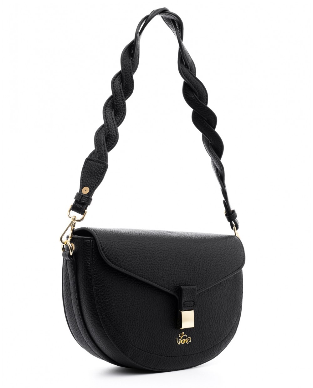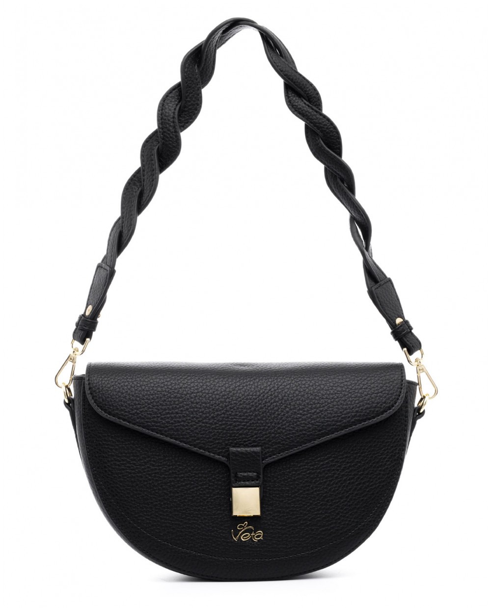 Τσάντα ώμου μαύρη με λουράκι πλεξούδα.