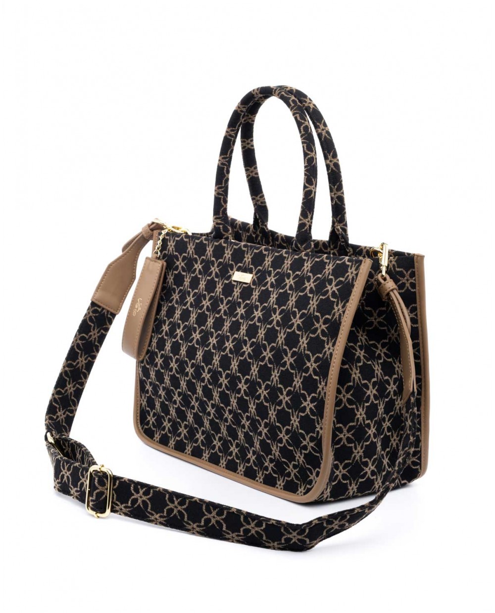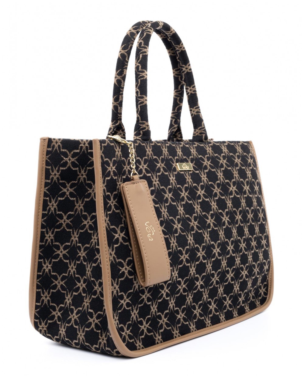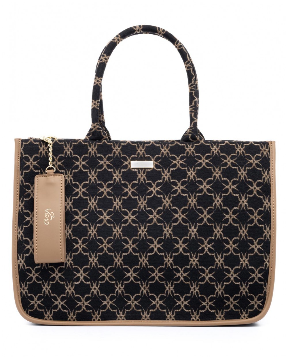 Τσάντα χειρός μαύρη με μπεζ βελούδινο μοτίβο λογότυπου Veta.