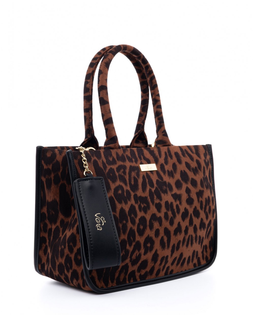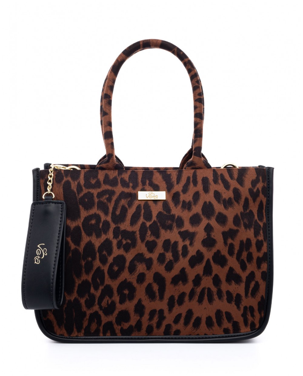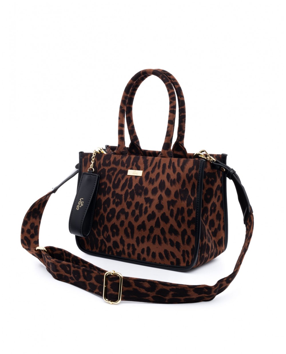 Τσάντα χειρός σουέντ καφέ λεοπαρ.
