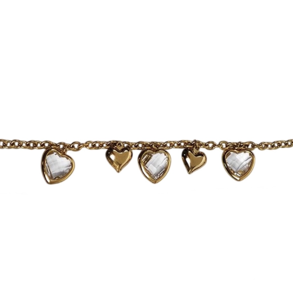 Βραχιόλι από επιχρυσωμένο ατσάλι, διακοσμημένο με χρωματιστές πέτρες καρδιά.