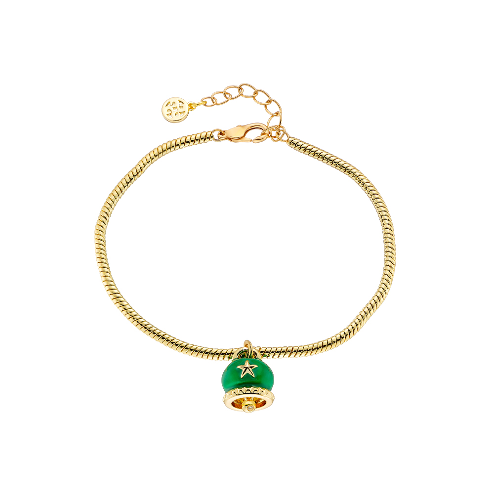 Βραχιόλι Lucky Charm μεταλλικό επίχρυσο με πράσινο σμάλτο και ζιργκόν