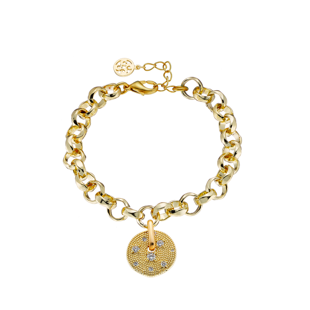 Βραχιόλι Natrix μεταλλικό επίχρυσο καδένα με λευκά ζιργκόν 1.8 cm